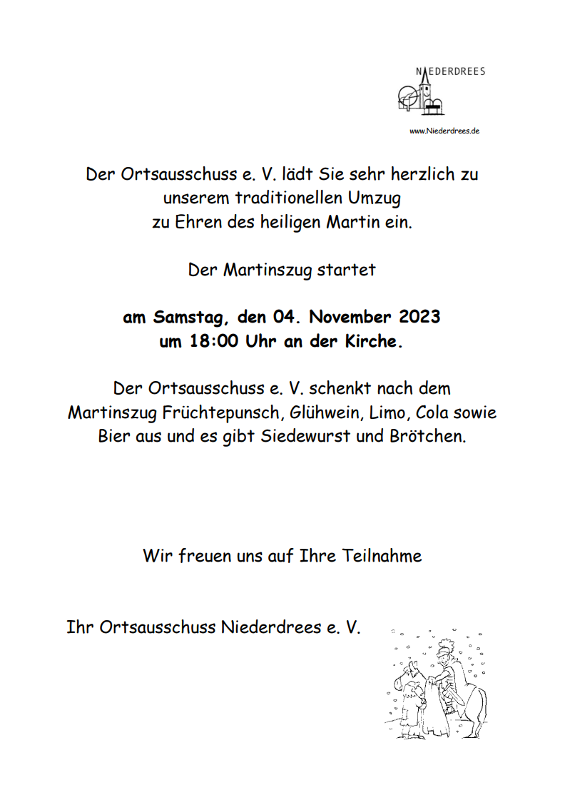 05.01.2024 14 Uhr Sternsinger ziehen durch Niederdrees 08.01.2024 15 Uhr Seniorenkaffee 03.02.2024 Echo Sitzung 05.02.2024 15 Uhr Seniorenkaffee 10.02.2024 Biwak, Karnevalszug und anschl. Ausklang vor dem Feuerwehrhaus 04.03.2024 15 Uhr Seniorenkaffee 16.03.2024 10 Uhr Frühjahrsputz 30.03.2024 14 Uhr Ostereiersuchen für die Kinder bis 10 08.04.2024 15 Uhr Seniorenkaffee 30.04.2024 19 Uhr …