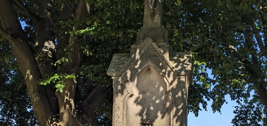 Auf dem Niederdreeser Friedhof weisen zwei nebeneinanderstehende schlichte Holzkreuze darauf hin, dass hier Kriegsopfer ruhen.