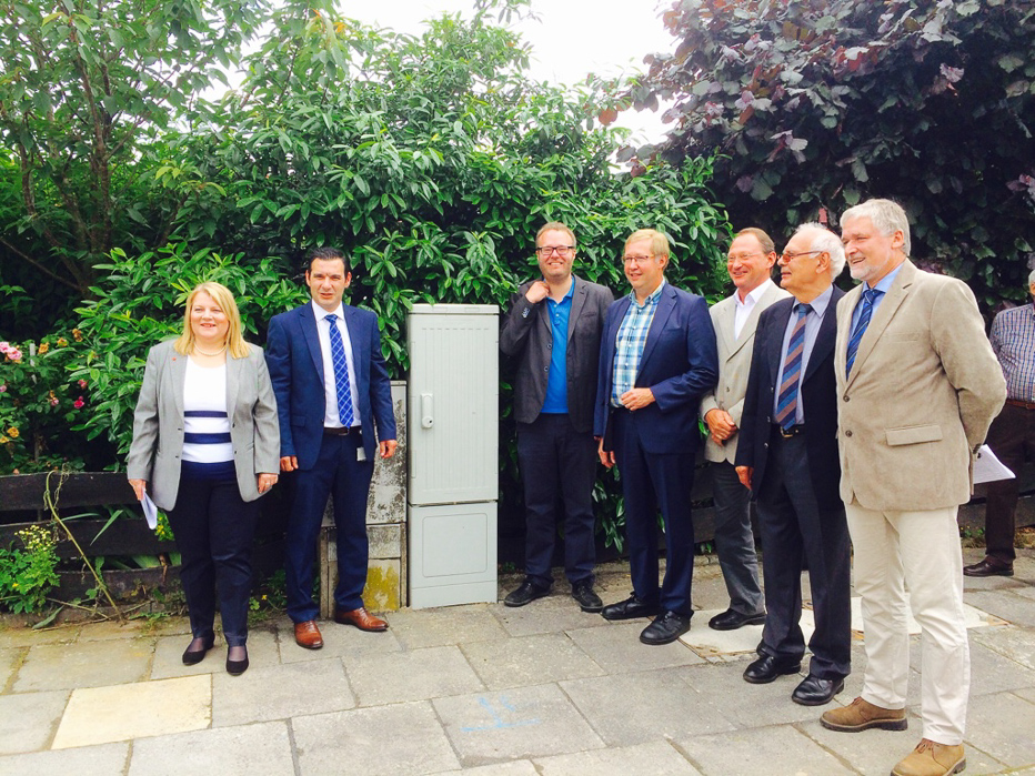 Mit diesem launigen Kommentar eröffnete der Landtagsabgeordnete Achim Tüttenberg die offizielle Inbetriebnahme der von der Firma b:nt installierten Verteilerkästen für schnelle Internetleitungen in Niederdrees.